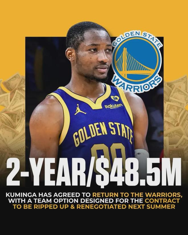 本赛季交易截止日是2026年2月5日,从库明加解锁交易资格,但交易截止日仅有20天的时间。库明加的合同2年4850万美元,第二年球队选项。今年夏天库明加和勇士陷入拉锯战,双方达成续约时也约定了勇士将为库明加找下家。